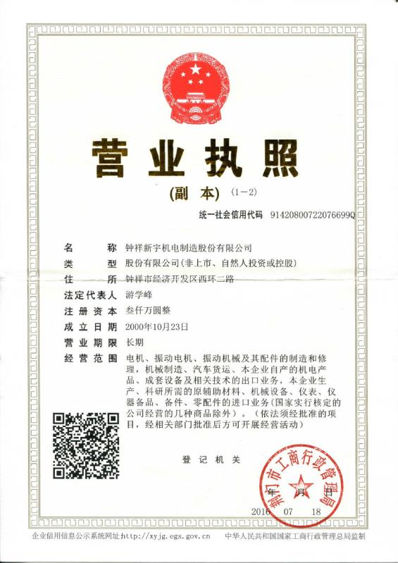 鐘祥新宇機電制造股份有限公司——中國大型振動電機生產基地!聯系人:宋文耀(經理)電話:0724-4231097 13607265083