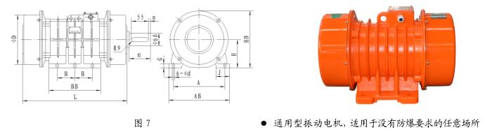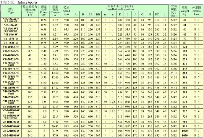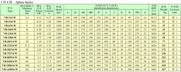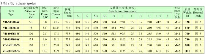 VB系列振動電機,功率0.12~25KW,2、4、6、8極,激振力為2.5~300KN,共計56個規格。